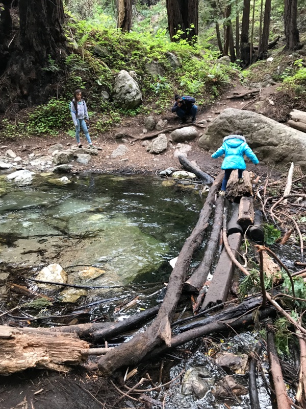 It was not a warm California day and the water was straight up icy so no one even thought of taking off any clothing item and dip any body part in the pools below the waterfalls. It was fun looking around and playing with the water with our hands though.